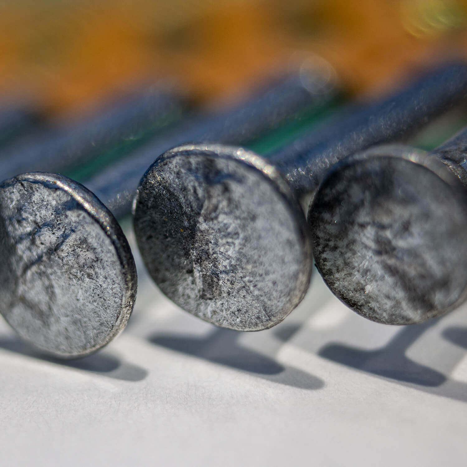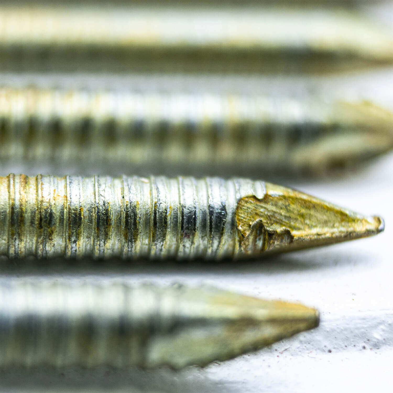 Also 3" x .120 (10D) Ring Shank, Plastic Strip, Hot Galvanized Vinyl Coated Nail for general construction and roofing - Galvanized Ring Shank Nails can be used for both Interior and Exterior Work - Ring Shank nails hold the nail in place by wedging the nail into the fiber of the board - 40 Percent better holding ability