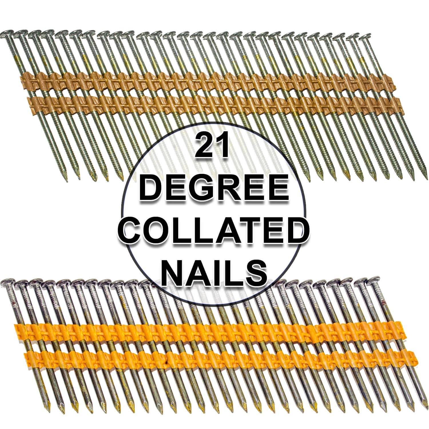 21 Degree Collated Nails - Vinyl coated framing nails in Smooth Shank and Ring Shank Galvanized.