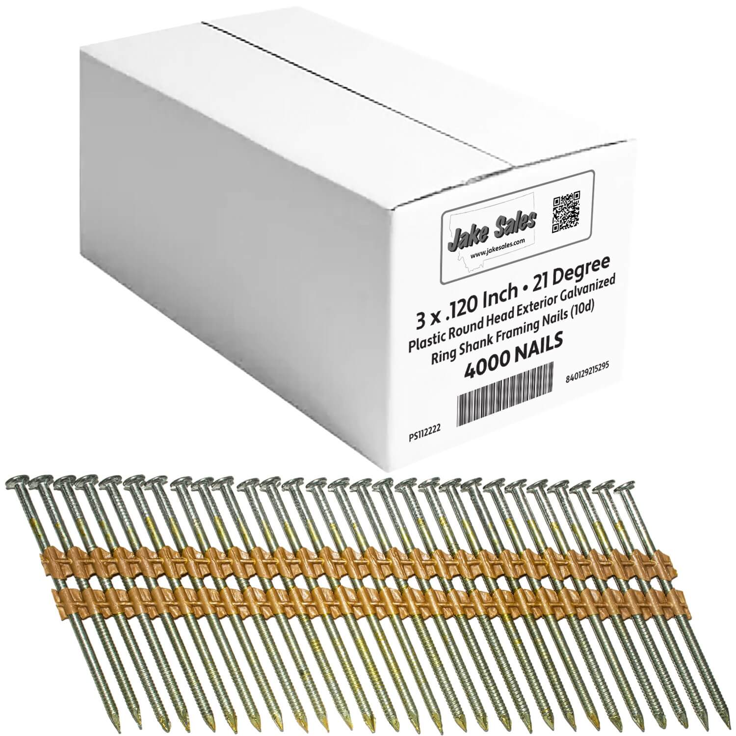 | 3" x .120" (10d) Ring Shank Gavanized 21 Degree Framing | Full Box | 4000 | Exterior/Interior |