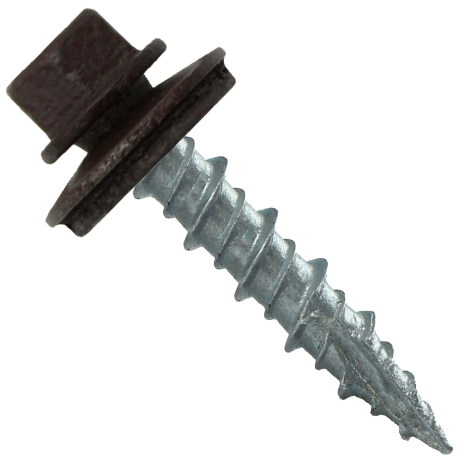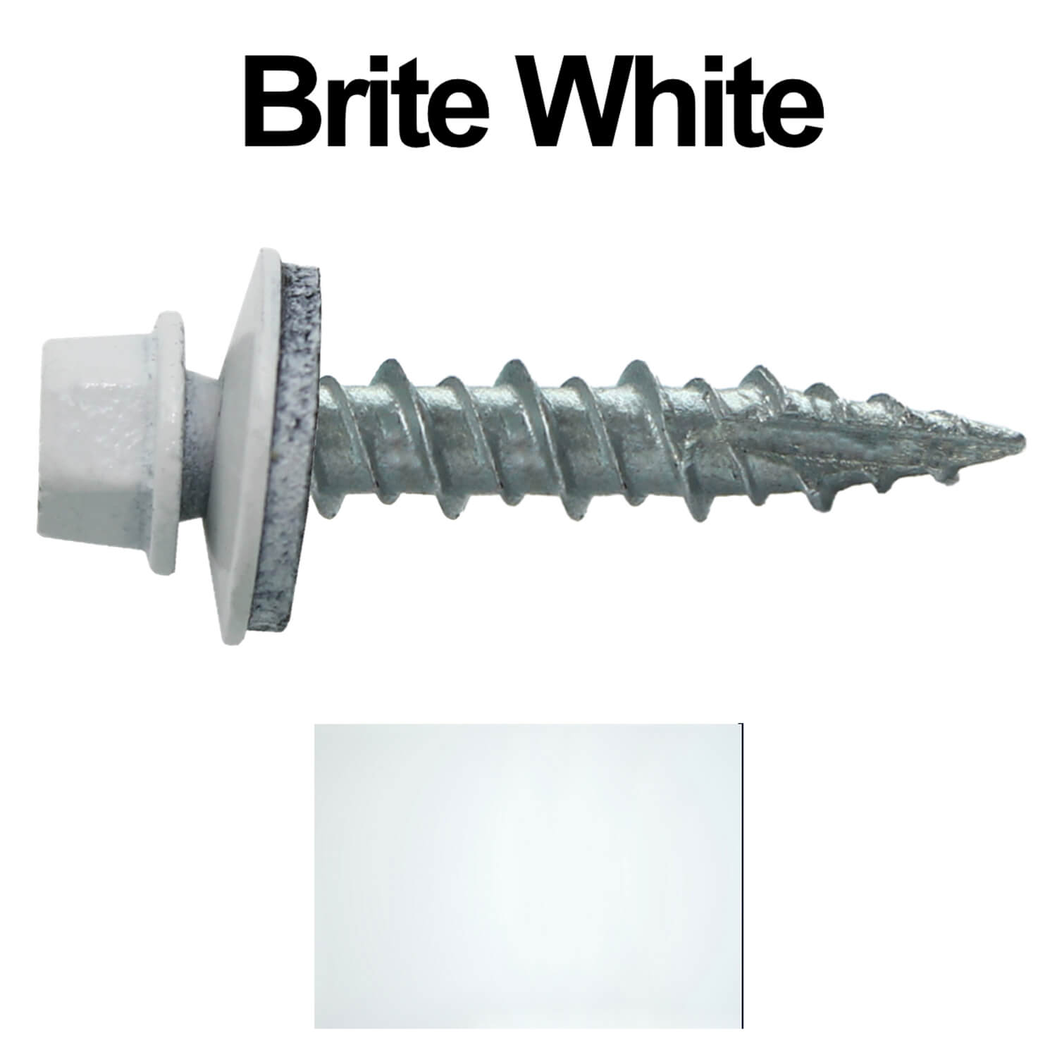 ONLY screw head is painted to ensure EPDM washer seals to metal roof. NO paint on the threads to maximize holding strength.