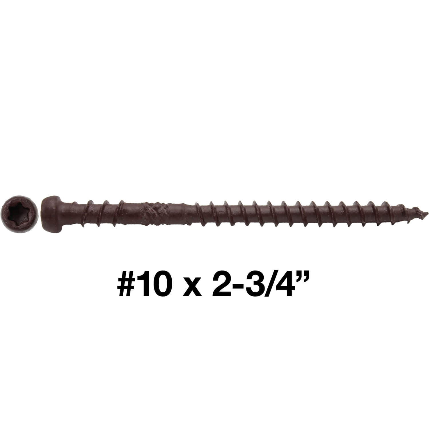 #10 x 2-3/4" Colored Composite Decking Wood Screws with Torx/Star Drive Head (T20 Bit), Exterior Coated, Compatible with Pressure Treated and ACQ Lumber