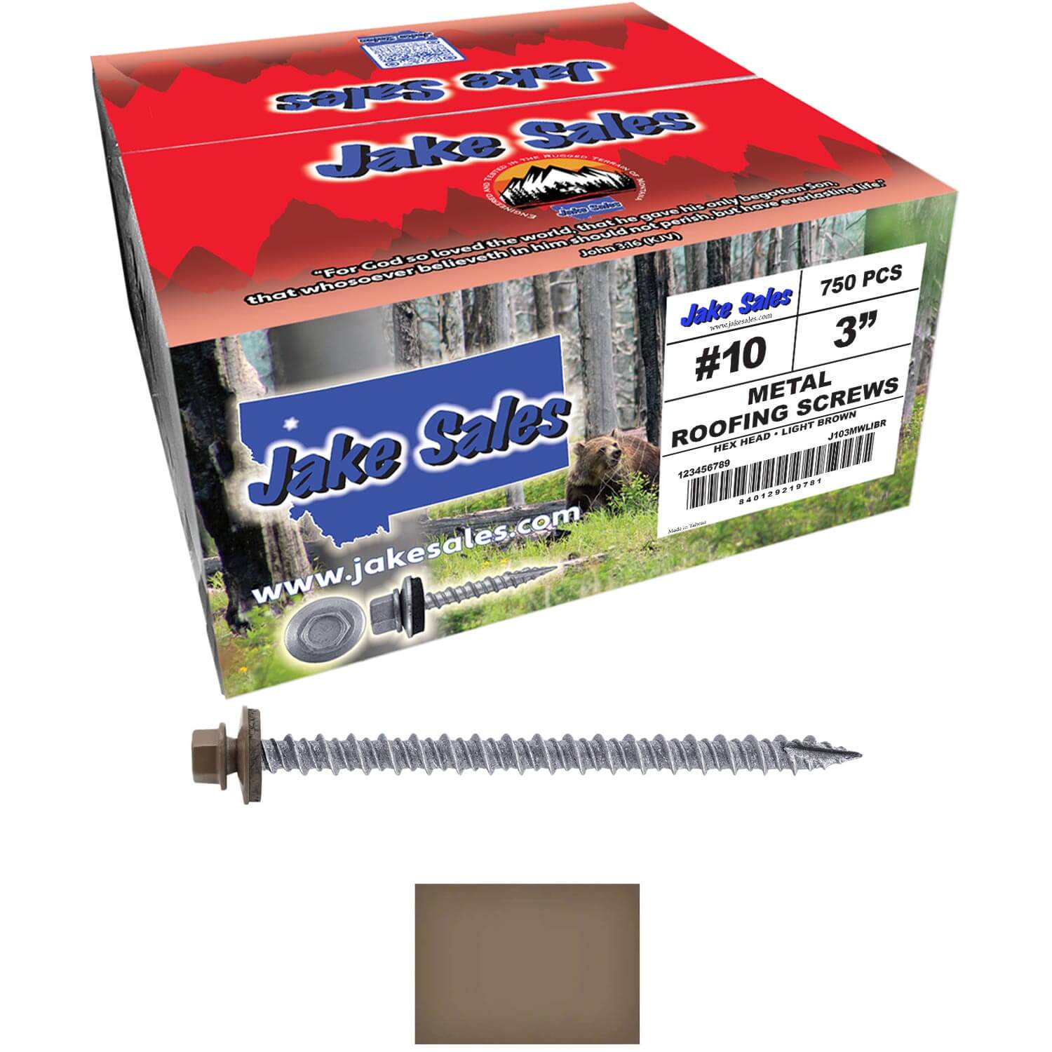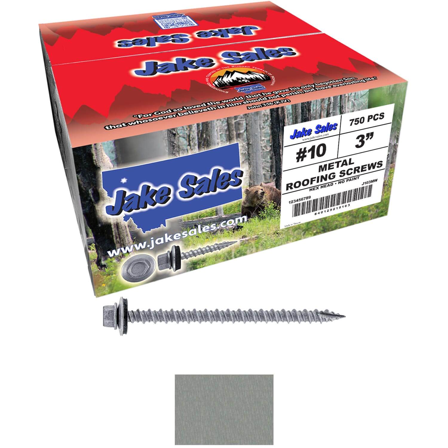 #10 x 3" Metal ROOFING SCREWS - Hex Washer Head - Self starting/self tapping - EPDM washer. Colored head.
