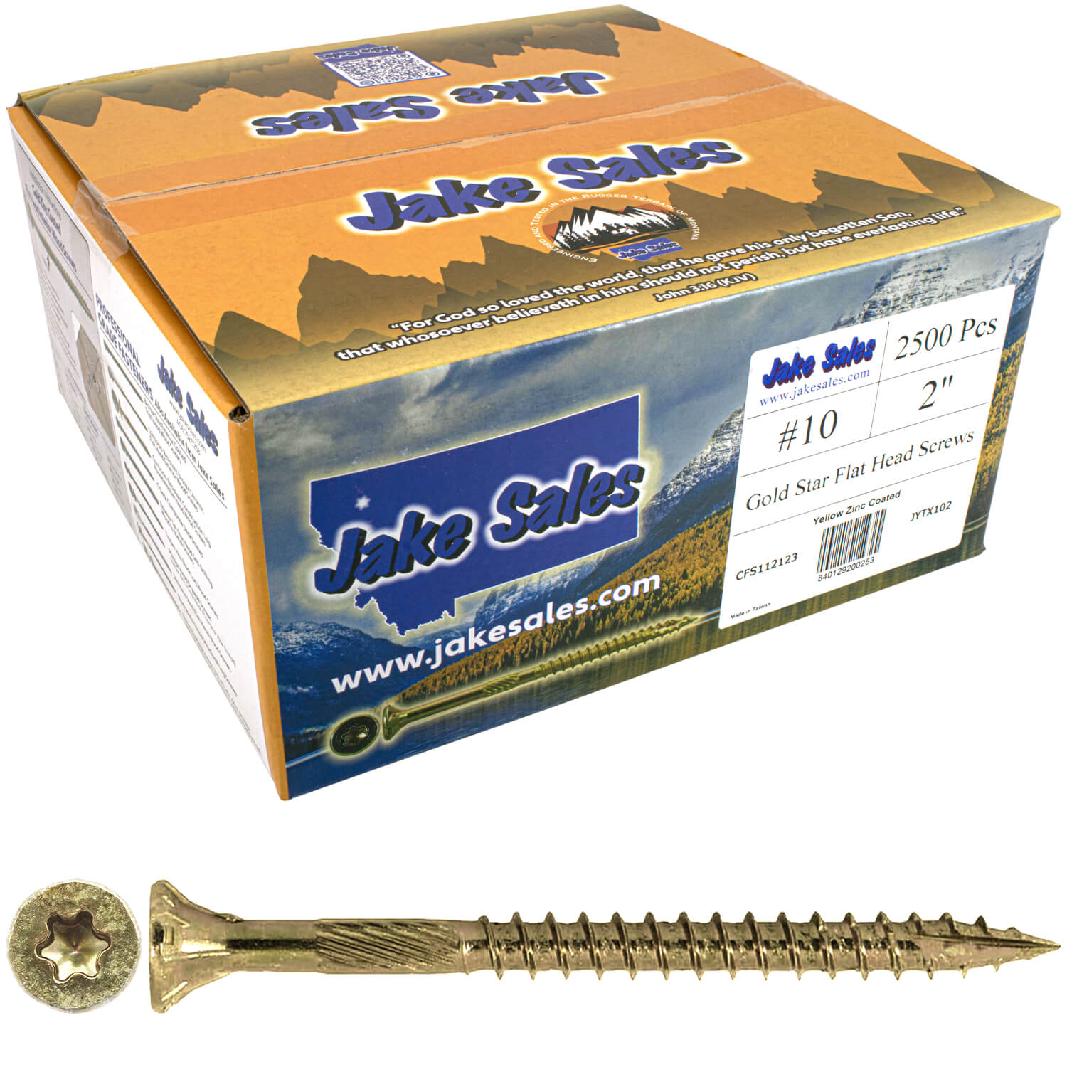 #10 Gold Star/Torx Drive Zinc Coated T-25 Flat Head Wood Screws
