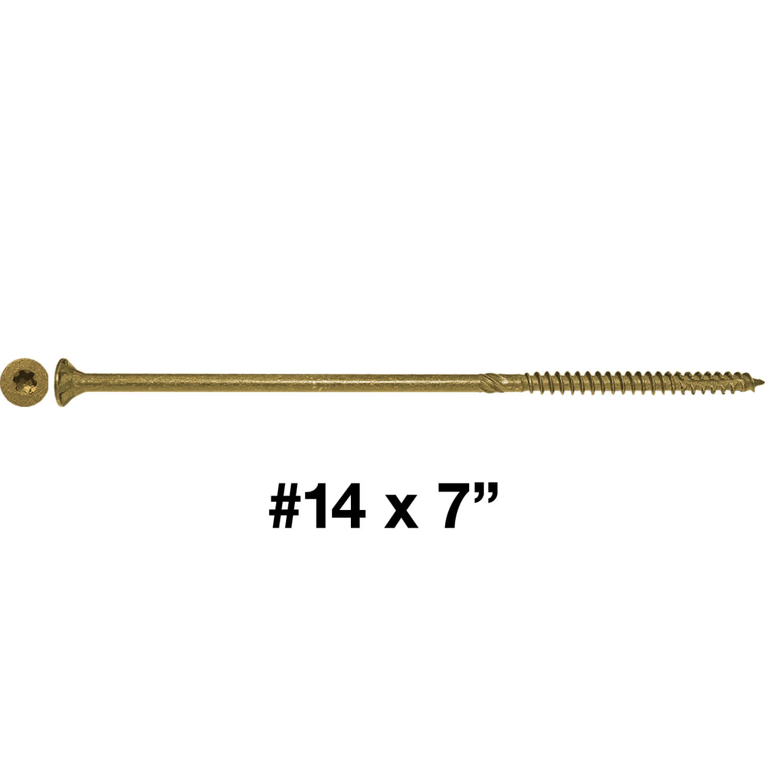 #14 Wood Screws with a .480" Diameter Torx Drive Head. Use the T30 Torx/Star Drive Bit for Installing these Quality Wood Screws. Our Bronze Torx/Star Drive Screws are an Excellent Fastener for Multipurpose Applications in Hard and Soft Woods, Chipboard, and other Tough Materials. These Bronze Exterior Coated Wood Screws are a Rugged Fastener for Professional Operations and Demanding Industries. Uses include cabinetry, framing, furniture, and other Applications. Our Wood Screws are so Strong they can even be Removed and Reused. Torx/Star Drive Wood Screw Head Provides Twice the Torque of Phillips or Square Drive Screw Heads.