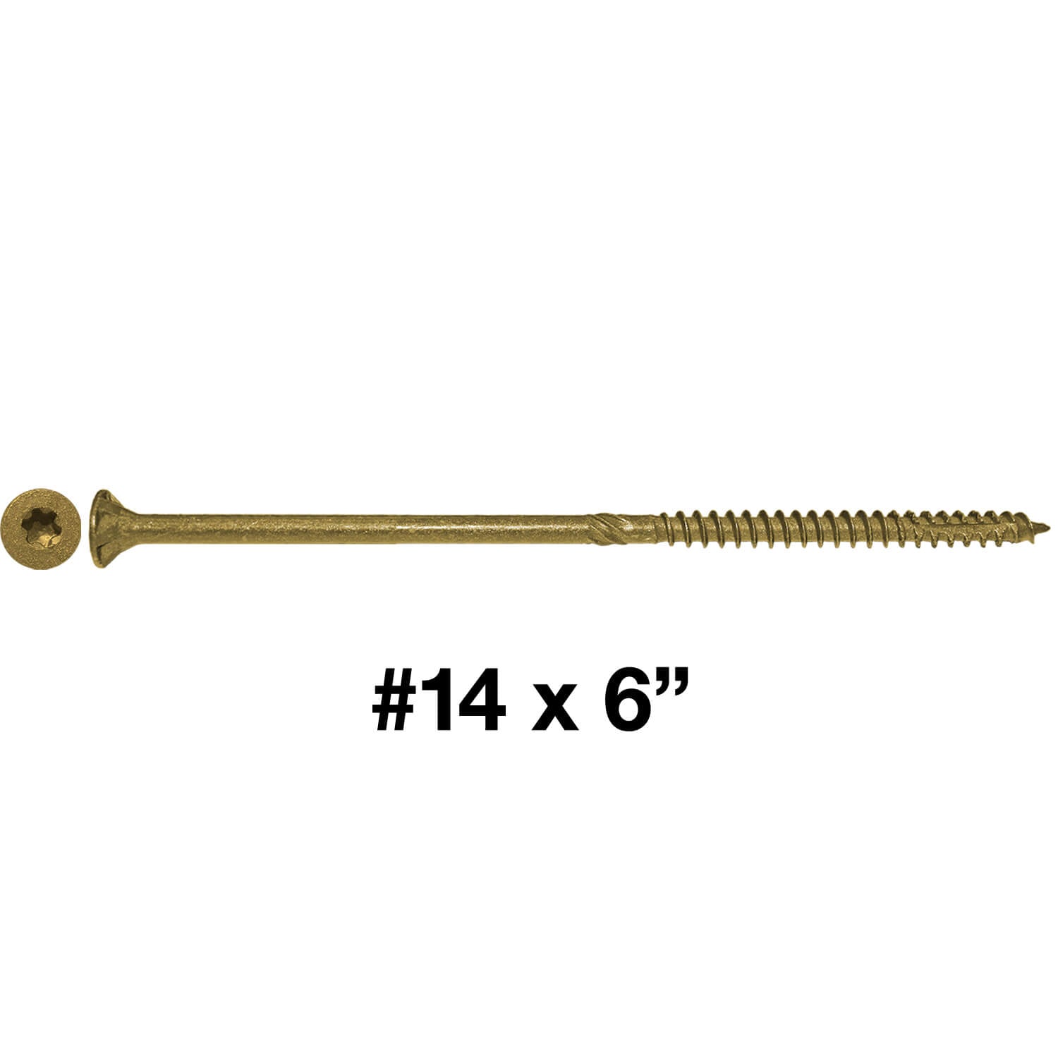 #14 x 5" - 8" Bronze Exterior Coated Wood Screws - Extra Long Bronze Wood Screw with Torx/Star Drive Head - Multipurpose Torx/Star Drive Wood Screws