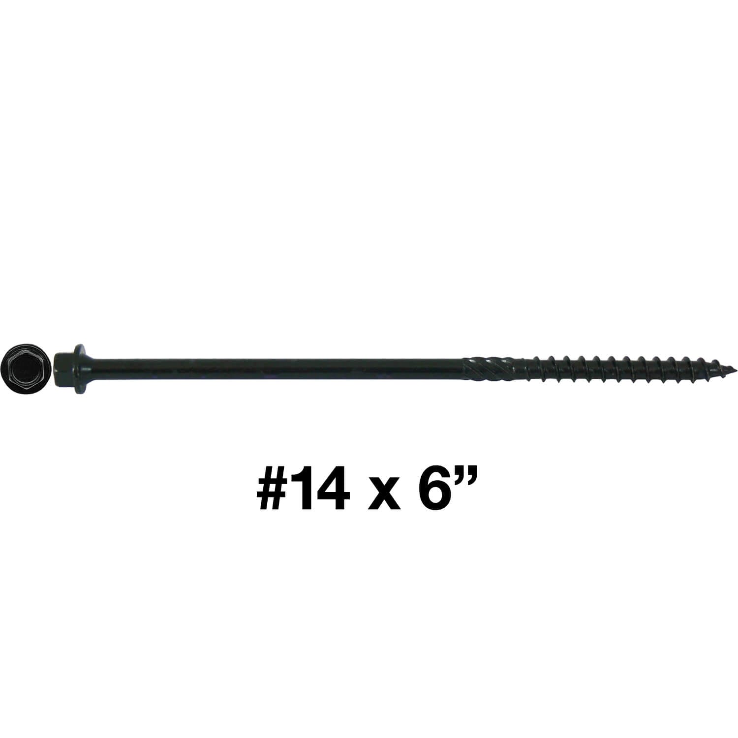 Easier to use than spikes, uses a 5/16 Hex Head driver to drive the screw. Heavy duty black log timber screws are most often used for landscaping timbers, log construction, log homes, and fencing. Shaft diameter measures ~1/4", with an ~ 1/2" washer head and with a 5/16 hex head. Type 17 self starting tip means easy to start without pre-drilling. Rugged and tough with great holding power.