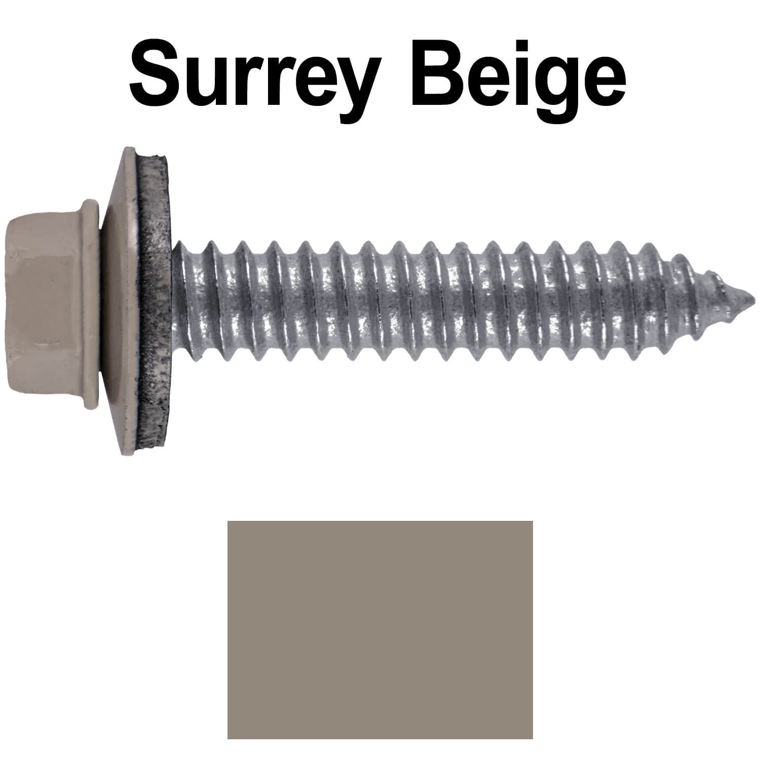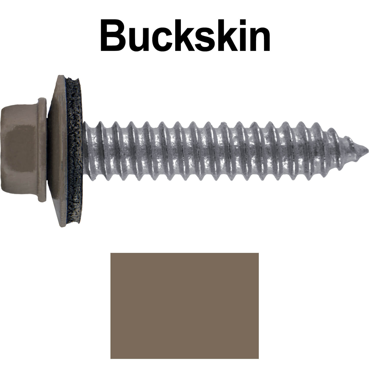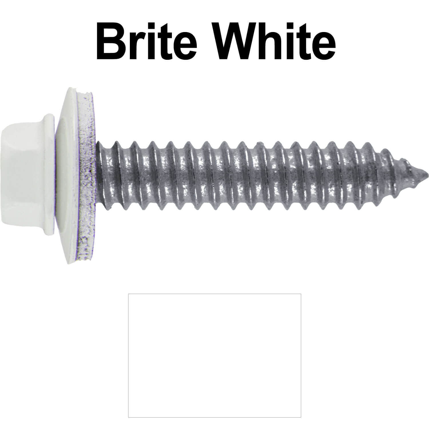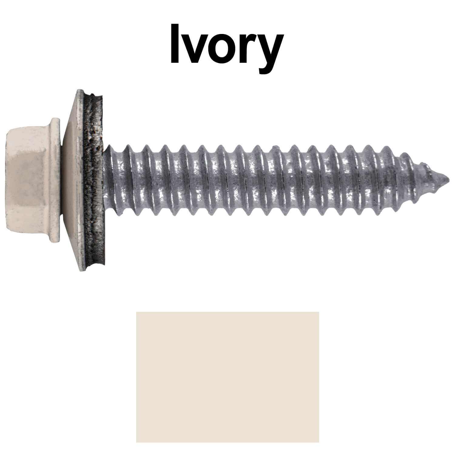 ONLY screw head is painted to ensure EPDM washer seals to metal roof. NO paint on the threads to maximize holding strength.