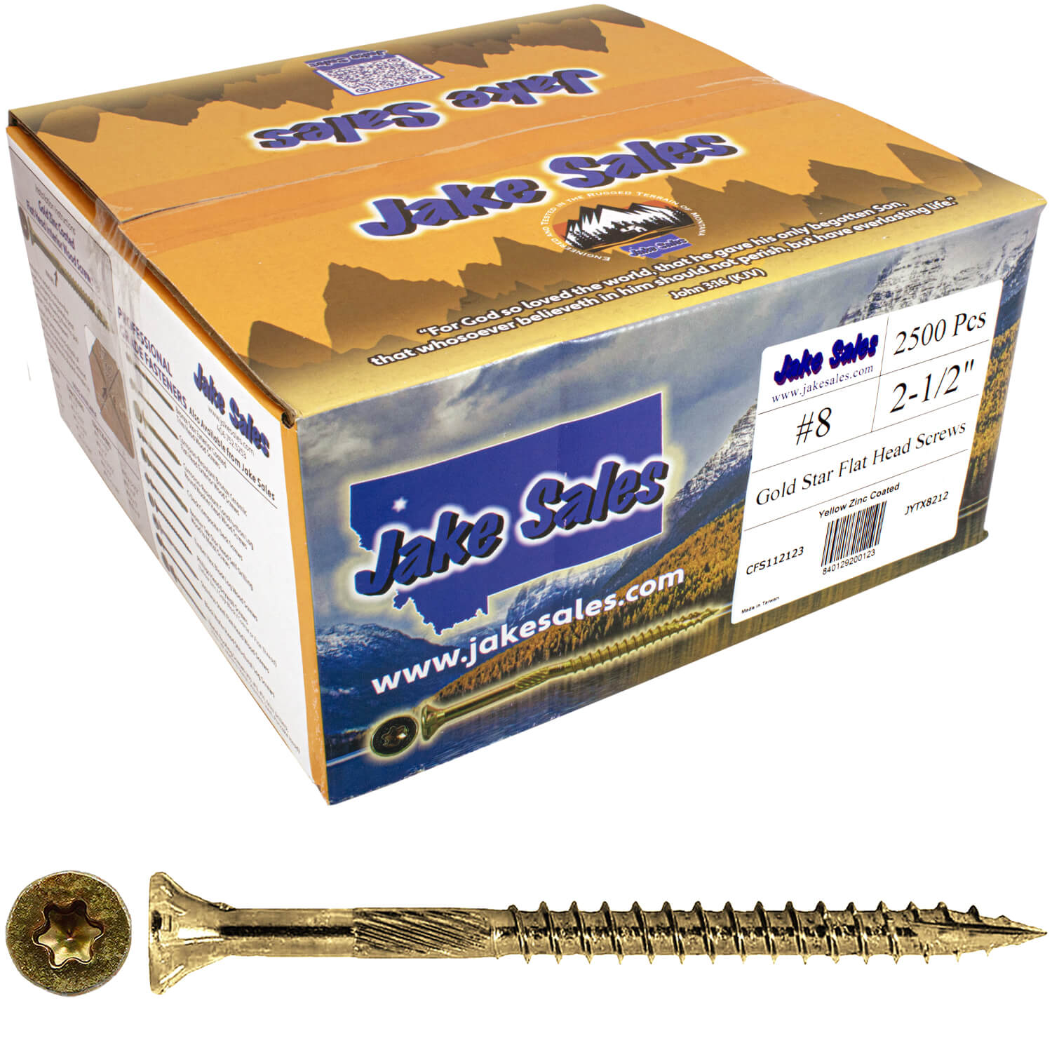 #8 Gold Star/Torx Drive Zinc Coated T-20 Flat Head Wood Screws