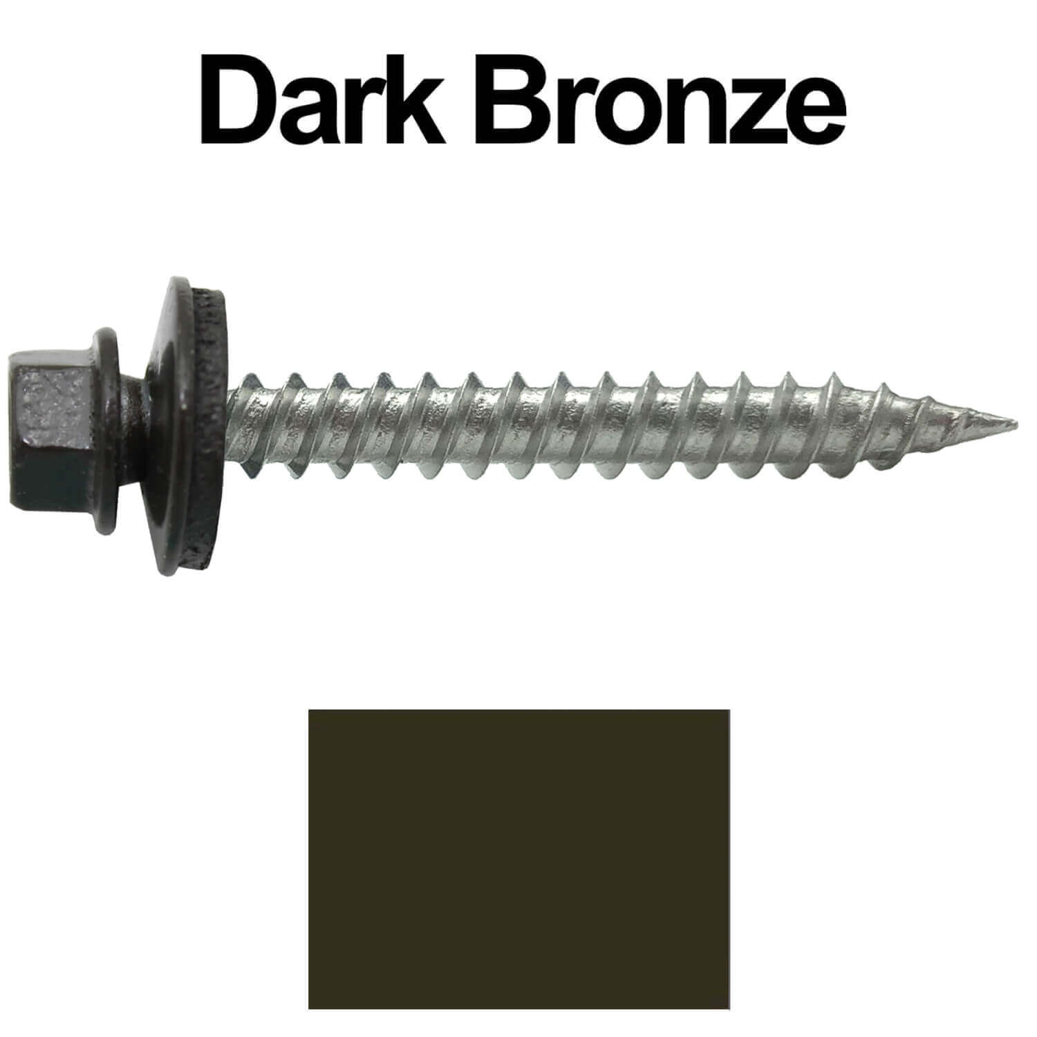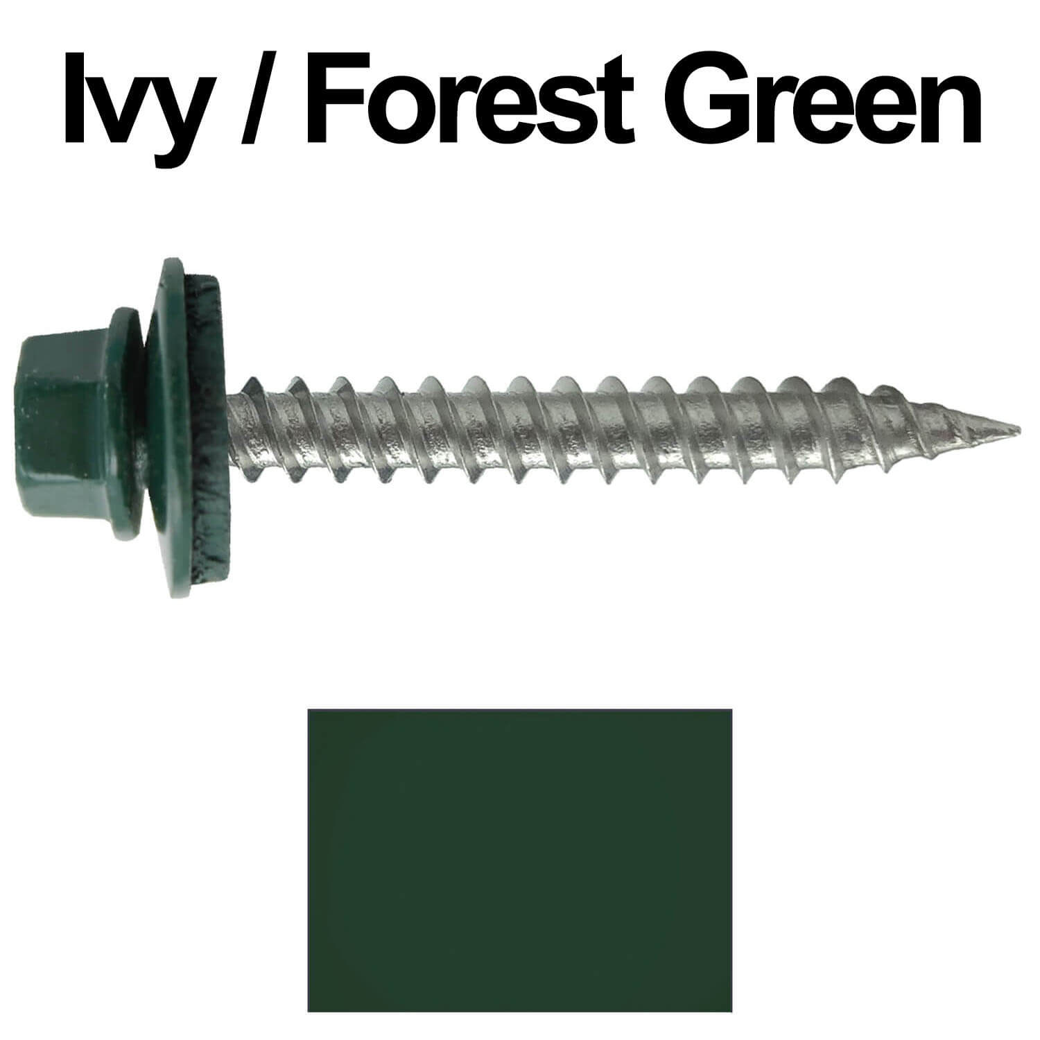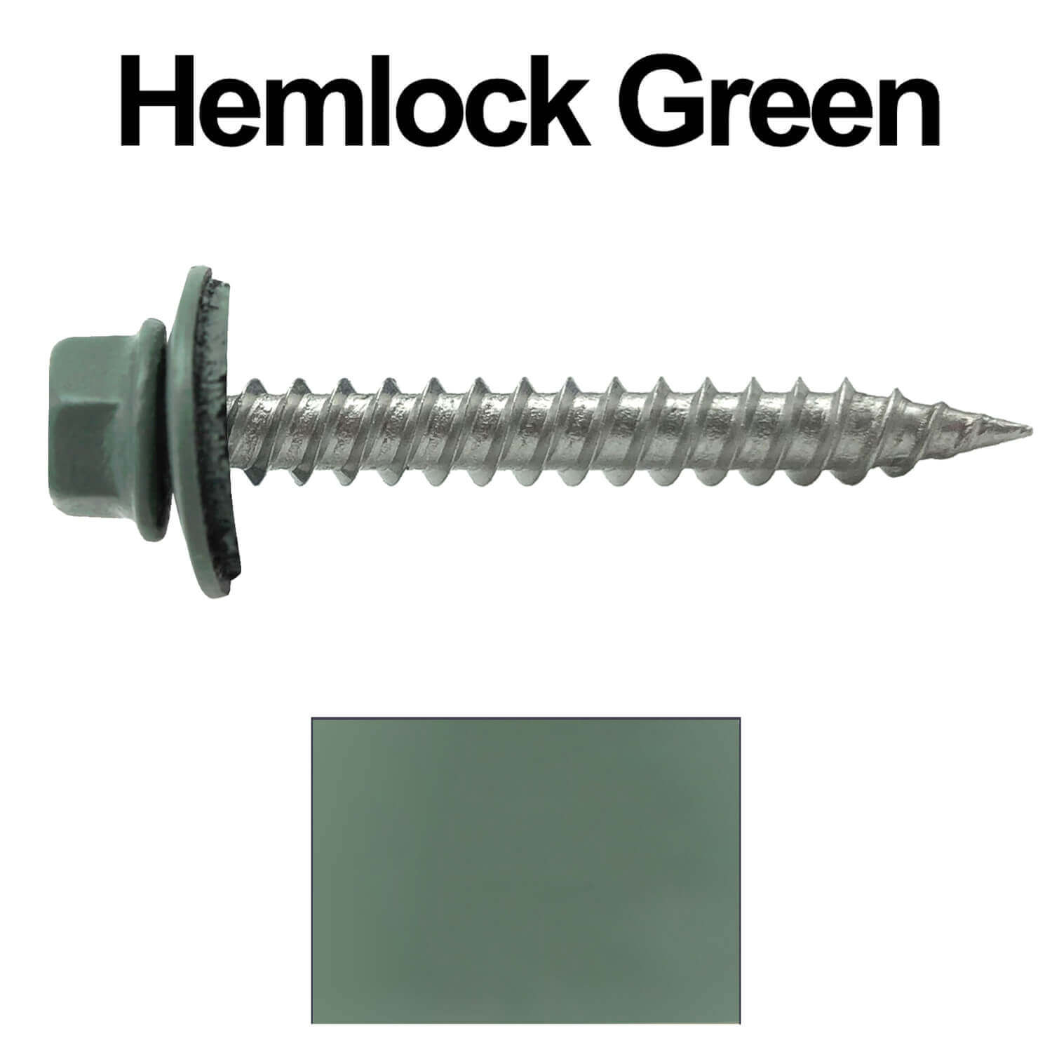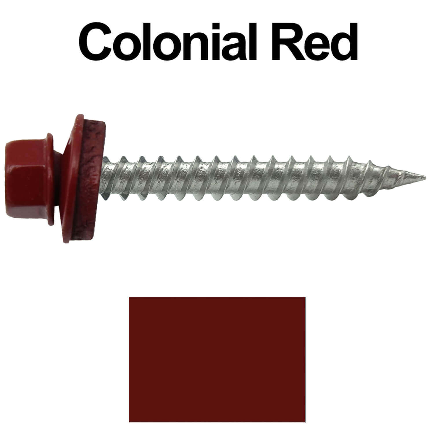 #9 x 1-1/2" Stainless Steel Metal Roofing Screws - Hex Washer Head - Self-Piercing (SP) tip metal to wood siding screws. EPDM washer. Colored head.