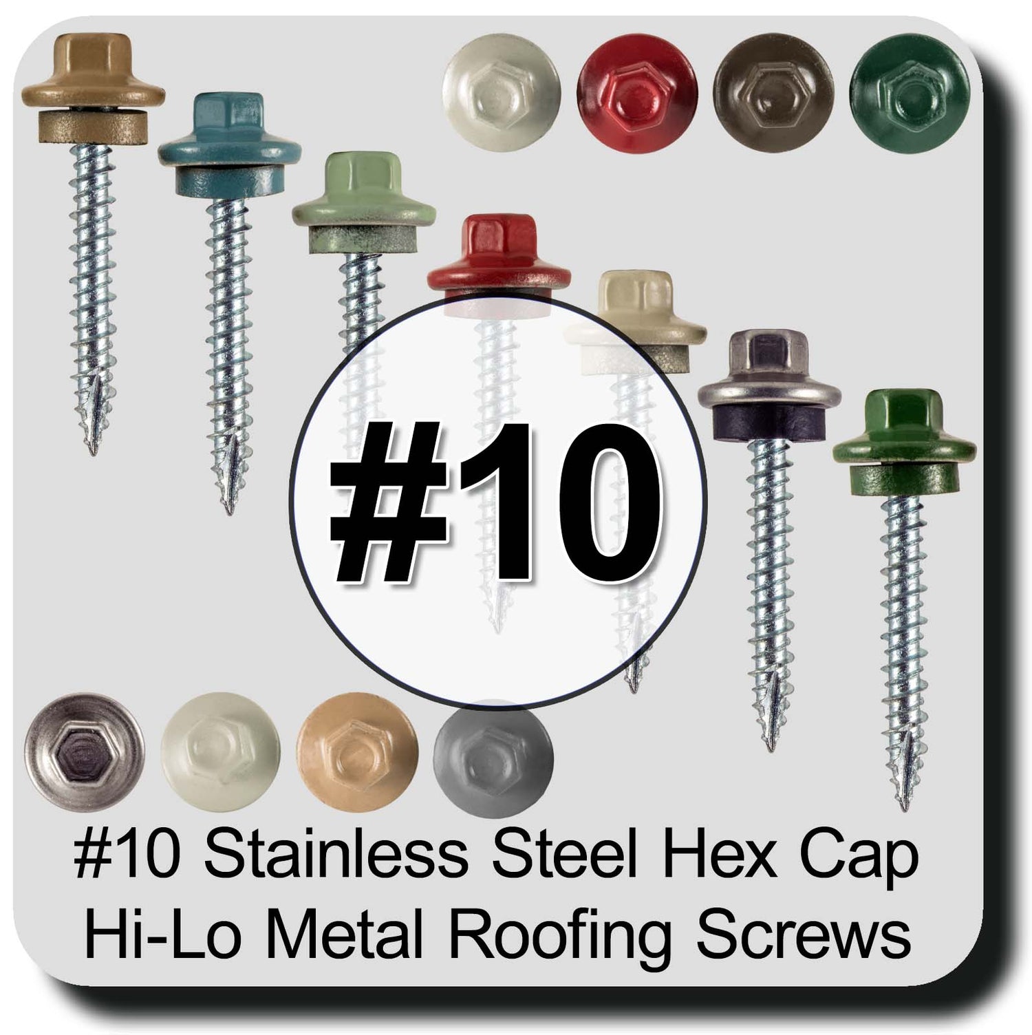 #9 Stainless Steel Sheet Metal Roofing Screws1/4" Hex Head - 1/2" EPDM...