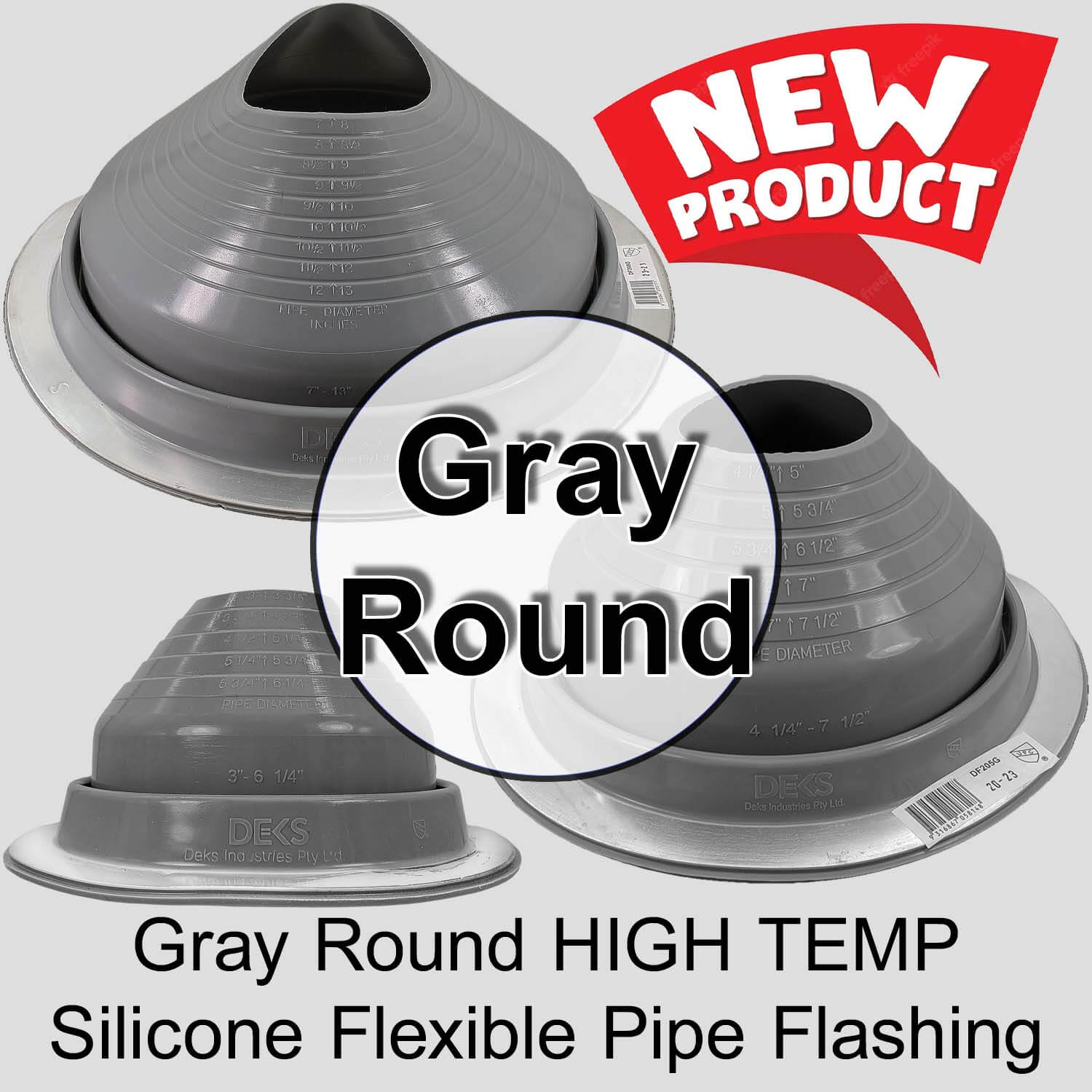Dektite GRAY Round HIGH TEMPERATURE Silicone Flexible Pipe Flashing Dektite: Metal Roof Jack Pipe Boot - Metal Roofing Pipe Flashing