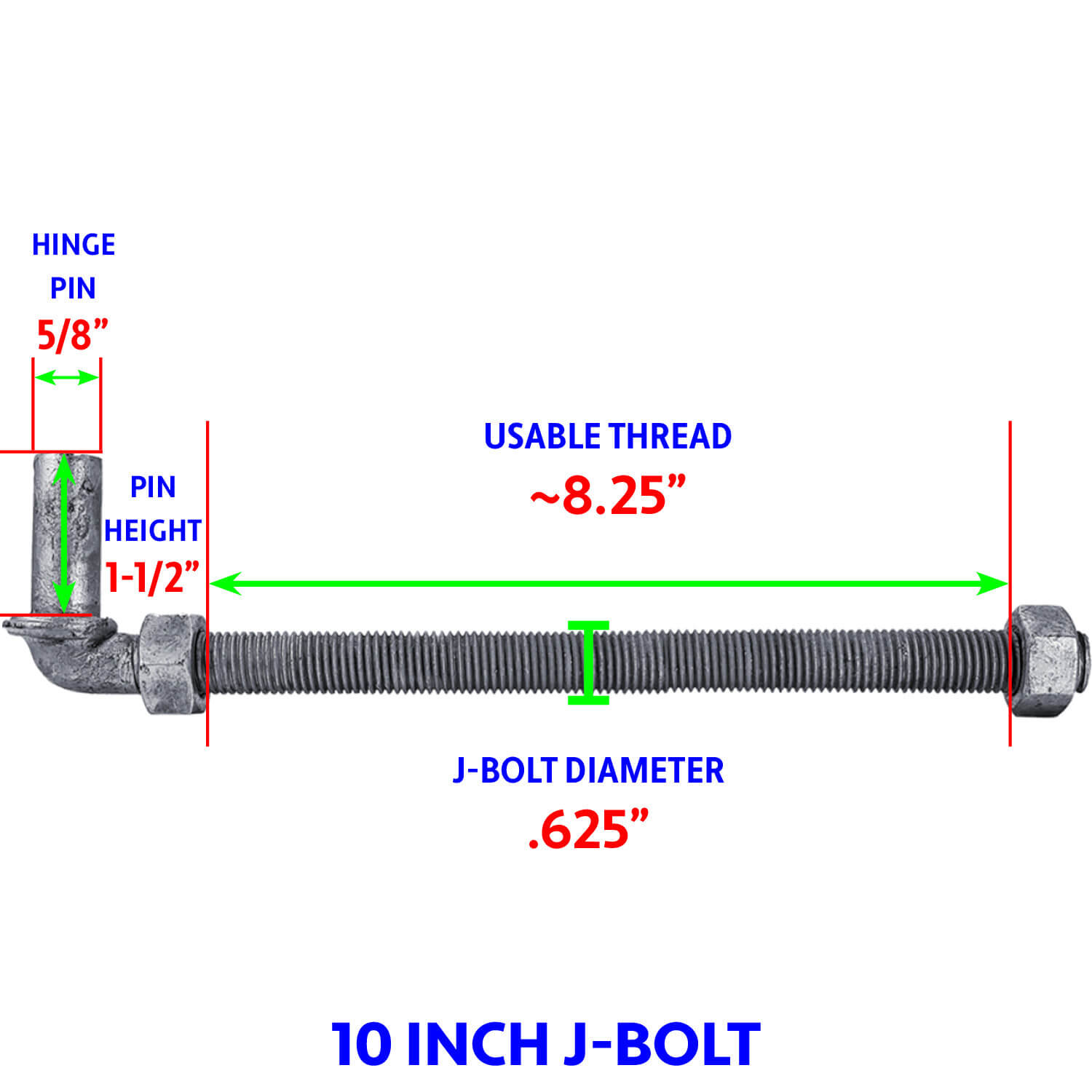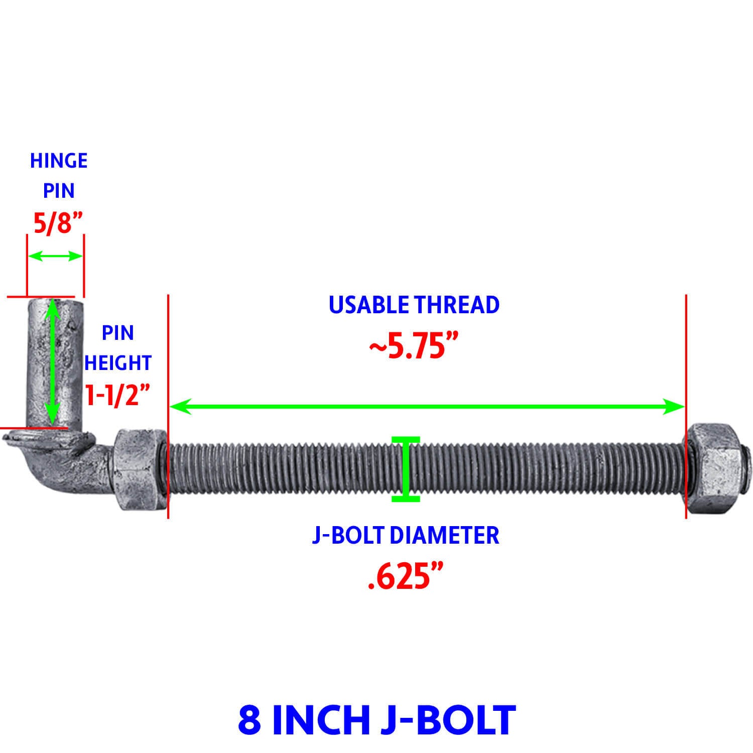 ✔J-Bolt Hinge works with 5/8" Gate Frame hinges that accommodate a 5/8" pin opening